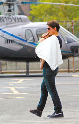 阿湯哥近日帶愛女蘇瑞乘坐直升飛機出行,他效仿麥當娜的行為太不環(huán)保,卻絲毫不怕遭受炮轟,就連女兒蘇瑞也難忍機場噪音,堵耳以示抗議。