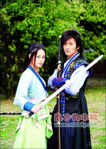 阿嬌和謝霆鋒在《浣花洗劍錄》中飾演一對情侶。