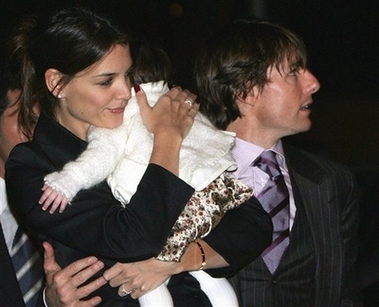 湯姆克魯斯與抱著小女兒蘇莉的愛(ài)妻凱蒂荷姆斯。