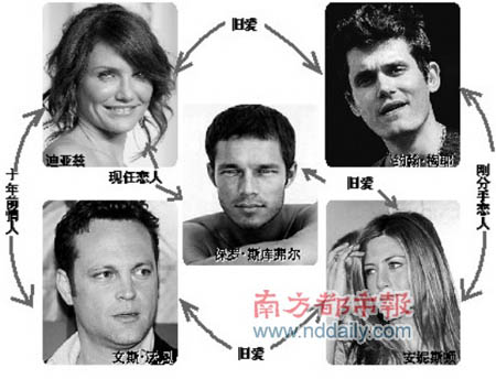 卡梅隆·迪亞茲和珍妮佛·安妮斯頓雖不是姐妹淘,但卻有驚人的相似點(diǎn)。兩人不僅都擁有金發(fā)碧眼,而且連對男友的喜好都相當(dāng)相似。兩人都和約翰·梅耶(JohnMayer)、保羅·斯庫弗爾、文斯·沃恩(VinceVaughn)等人譜出一段戀情。(記者 張麟)