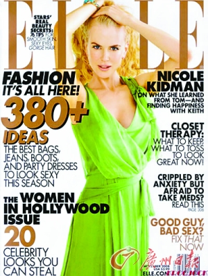 奧斯卡影后妮可·基德曼成為了最新出版的《Elle》雜志的封面人物,并為該雜志拍了一組照片,照片中的妮可依舊高貴優(yōu)雅,這位41歲的“新媽媽”為了宣傳主演的新電影《澳大利亞》暫時遠離了她與丈夫凱斯·厄本及女兒在田納西州首府納什維爾的田園生活。