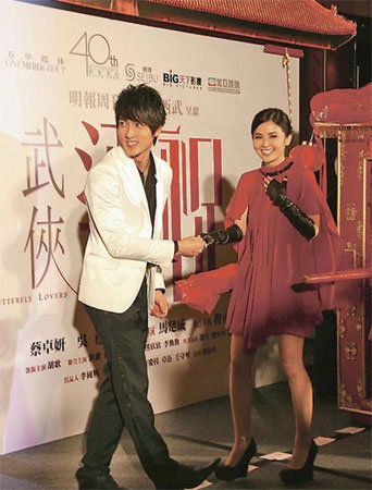 中新網(wǎng)10月7日電 馬楚成新片《劍蝶》前晚在香港舉行首映禮,主演阿Sa身穿鮮紅色連身裙,儼如新娘子般坐花轎出場(chǎng),由手持長劍的吳尊“踢轎門”,引得現(xiàn)場(chǎng)粉絲尖叫連連。吳尊坦言被阿Sa的“新娘”裝迷倒,大贊雍容華貴,女人味十足。