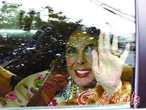坐上車后的泰勒隔著玻璃窗向攝影師招手,她珠光寶氣,依舊美艷迷人,但那已經(jīng)皺紋橫生的手卻毫不留情地提醒著人們這位一代美女已經(jīng)76歲的事實。