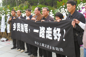 “鄉(xiāng)賢謝導(dǎo),一路走好!”昨日,為送謝晉最后一程,謝晉家鄉(xiāng)——上虞的父老鄉(xiāng)親們也專程派代表來(lái)到上海!爸x晉是我們的驕傲,他一生都在用電影為底層人民說(shuō)話,F(xiàn)在他走了,但我們一定會(huì)把他的電影夢(mèng)想繼續(xù)下去。”這位謝晉的老鄉(xiāng)說(shuō)。