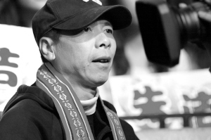 馮小剛?cè)滩徽弊樱徽J為是白癲風加重。 信息時報記者 陳爽 攝