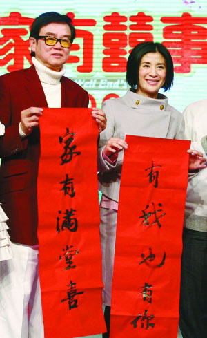 香港喜劇經(jīng)典《家有喜事》系列時(shí)隔11年后推出的《家有喜事2009》定于明年1月28日大年初三上映。影片主演黃百鳴、吳君如、姚晨、郭濤以及導(dǎo)演谷德昭等出席了昨日的發(fā)布會(huì)。該片是吳君如生子后接演的首部電影,不過(guò)她表示已有意減產(chǎn),多留時(shí)間給家人。盡管老公陳可辛已提出想與自己合作新片,但是吳君如透露因?yàn)樽约翰粫?huì)減片酬,所以還是希望老公多去賺外快。