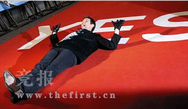 不過很快他就原形畢露,別的明星都在規(guī)規(guī)矩矩地走紅地毯,而金凱瑞禁不住影迷熱烈的歡呼聲,一高興干脆躺在了紅地毯上,而且還找了帶“Yes”的地方躺,高舉雙手做投降狀!疤伞蓖昙t地毯,搶盡風(fēng)頭的金凱瑞起身若無其事地起身和影迷們簽名合影,搞得其他演員哭笑不得。記者 張碩