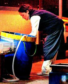 圖為:張柏芝媽媽清洗地板。