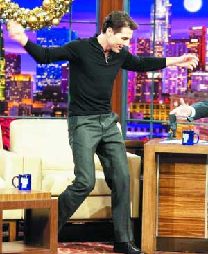由于愛妻凱蒂·赫爾姆斯正在紐約演出《我的子孫》,女兒蘇瑞也愛看歌舞片《歌舞青春》,靚佬湯似乎受她們母女影響,想證明自己能歌善舞。他13日做客美國知名脫口秀節(jié)目《今日秀》時說:“凱蒂喜愛歌舞劇,蘇瑞也是,我想在銀幕上載歌載舞。還記得小時候母親工作時,我和其他姐妹就在家看《音樂之聲》。 ”不過靚湯自稱從沒在電視上唱過歌,主持人杰·雷諾也沒邀他表演,愛現(xiàn)的他居然主動模仿貓王經(jīng)典曲《藍(lán)色麂皮鞋》的歌舞,幸虧觀眾很買賬驚呼連連。