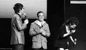 賀歲大片《非誠勿擾》前晚在杭州舉行首映禮,導(dǎo)演馮小剛大展群眾基礎(chǔ),除了片中三位主角葛優(yōu)、舒淇、徐若瑄出席之外,其他“有關(guān)無關(guān)”的明星也有一大堆到場,堪稱華誼藝人的一次集結(jié)。王寶強、胡可、馮遠征、張涵予、尚雯婕、羽泉、楊坤等均到場獻藝。難怪前天馮小剛欣慰地說:“我從來不擔(dān)心觀眾,觀眾一直在跟我走。”
