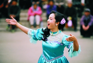 蔣雯麗在《立春》中的齙牙歌唱家形象。