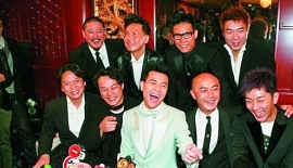 梁漢文(中)結(jié)婚,大批兄弟撐場(chǎng)。