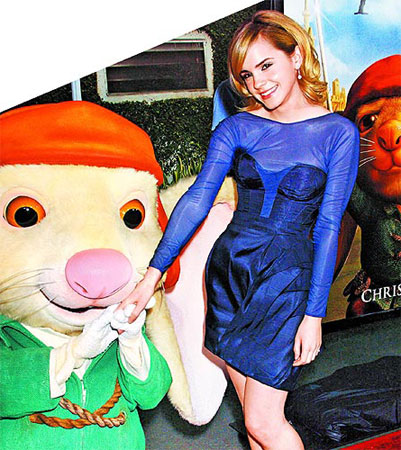 臺灣媒體報道,艾瑪出席動畫片《雙鼠記》(The Tale of Despereaux)好萊塢首映,身穿薄紗包肩露背洋裝性感亮相。