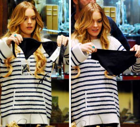 中新網(wǎng)12月30日電 英國《每日郵報(bào)》報(bào)道,女星林賽·羅翰享受閑暇時(shí)光,與同性女友薩蔓莎一起逛性感內(nèi)衣。在店里,林賽對(duì)一件黑色內(nèi)衣愛不釋手。付款時(shí),林賽忙著講電話,薩蔓莎體貼地為她埋單。