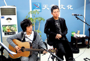 昨天,羽·泉在北京一家錄影棚中現(xiàn)身,二人正在為這周六舉行的“黃金10年”演唱會進(jìn)行排練,排練間隙二人告訴記者:“只憑票房這場演唱會鐵定賠錢!