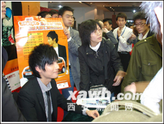 昨天下午,2007“快樂男聲”冠軍陳楚生和樂壇新星小類同時(shí)現(xiàn)身西安,在新華文軒西安書城參加“團(tuán)聚音樂夢想”簽唱活動(dòng)。獲悉消息的“花生們”提前幾個(gè)小時(shí)趕到書城,準(zhǔn)備一睹偶像風(fēng)采。然而,由于到場的歌迷太多,舉辦活動(dòng)的地方能容納的人有限,加上主辦方?jīng)]有協(xié)調(diào)好,致使場面幾度混亂。