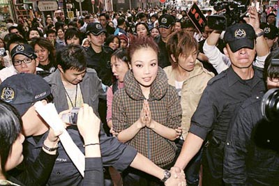 據(jù)香港明報(bào)報(bào)道,在派發(fā)海報(bào)時(shí)場(chǎng)面非常混亂,有否擔(dān)心人多混亂被偷摸?祖兒說(shuō)她一直是做雙手護(hù)胸動(dòng)作,而且Fans會(huì)自發(fā)性為她開(kāi)路,她說(shuō):“Fans長(zhǎng)大了,也不再像以前般瘋狂,不過(guò)助手都有被人拉扯。”