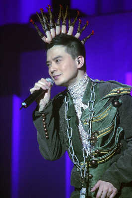 與其他流行歌手的演唱會(huì)相比,昨夜的上海大舞臺(tái)并未爆滿,但好在滿場(chǎng)都是黃耀明以及“人山人!钡乃乐曳劢z,所以當(dāng)周耀輝、當(dāng)李端嫻、當(dāng)AT17的ELLEN以及林一峰等人陸續(xù)入場(chǎng),均收獲了粉絲的熱情尖叫。整個(gè)現(xiàn)場(chǎng)猶如“人山人海”與家人的節(jié)日聚會(huì)一般熱鬧,還未開(kāi)場(chǎng),內(nèi)場(chǎng)前區(qū)已經(jīng)擠滿了隨著音樂(lè)跳躍的歌迷。當(dāng)燈光全部暗下,伴隨著歌迷熱情的歡呼聲,黃耀明猛然出現(xiàn)在舞臺(tái)正中,幕布尚未全部拉開(kāi),身著白色羽毛褲的黃耀明唱起歌曲《下世紀(jì)再嬉戲》。戴著黃耀明經(jīng)典的妖精耳朵或者頭頂白色長(zhǎng)發(fā)的歌迷們開(kāi)始集體大聲跟唱;蛟S對(duì)于不少死忠歌迷而言,這場(chǎng)演出仍然伴隨著許多遺憾,比如黃耀明的造型在早前許多演唱會(huì)上用過(guò),開(kāi)場(chǎng)的帽子曾在“滿天神佛”演唱會(huì)上用過(guò),羽毛褲則曾在“光天化日”演唱會(huì)上穿過(guò),而后換上的第二套衣服也曾在“達(dá)明一派為人民服務(wù)”演唱會(huì)上用過(guò)。但每當(dāng)他下臺(tái)換裝,場(chǎng)內(nèi)便會(huì)響起一陣陣期盼的歡呼聲,甚至有歌迷干脆對(duì)著停下來(lái)與歌迷打招呼的黃耀明大喊:“講廣東話!”對(duì)歌迷而言,能夠一次看到“滿天神佛”、“光天化日”以及黃耀明與港樂(lè)合作的三場(chǎng)演唱會(huì)的精華,也算是不虛此行。