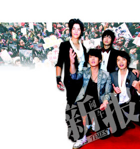 出道不久卻人氣爆棚的臺灣偶像團(tuán)體“飛輪海”昨日空降上海。因?yàn)楹炇勖~限量2500名,麥樂迪KTV門外從前晚就開始有人排隊(duì)。對于自己的人氣,“飛輪!眳s很賣乖,異口同聲道“我們還是新人”。有著“當(dāng)紅炸子雞”身份的他們還表示,從來沒想過“萬一不紅”之后的打算。