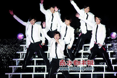 小巨蛋歷史上最快開個唱的新人來了,臺灣當下最紅男子團體之一棒棒堂26日晚在臺北小巨蛋舉辦個唱。雖然2007年底才發(fā)行第一張專輯,但這不妨礙棒棒堂們巨大的市場號召力,當晚7000多歌迷現(xiàn)場同High,興奮得把手中的充氣棒從開始舞到結束!