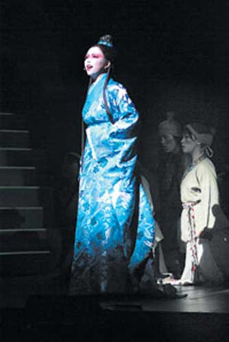 音樂(lè)劇《圖蘭朵》一連要在日本的東京赤阪、大阪及名古屋演出59場(chǎng)。該劇的幕后制作團(tuán)隊(duì)更是堪稱豪華,音樂(lè)出自日本著名作曲家久石讓之手,色彩豐富的華麗服裝則由曾經(jīng)獲得過(guò)奧斯卡金像獎(jiǎng)最佳服裝設(shè)計(jì)的和田奧美子操刀。為表現(xiàn)公主的尊貴華麗,劇中的服裝完全用真金真銀、純手工刺繡及綾羅綢緞來(lái)打造,每套都重達(dá)20公斤。在表演中,有一座長(zhǎng)達(dá)25級(jí)階梯的場(chǎng)景,張惠妹必須穿戴又重又長(zhǎng)的戲服,來(lái)來(lái)回回地在樓梯上表演,據(jù)悉劇組為此特別為她購(gòu)買了高達(dá)3億日元的巨額保險(xiǎn)。