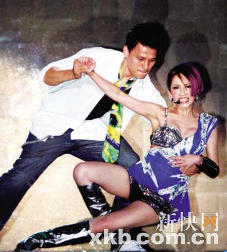 趁新專輯《3面夏娃》大賣,El-va9日晚在臺中舉辦表演秀,并以性感舞衣及14首金曲答謝粉絲,最矚目的是她身穿單肩閃電圖案上衣,秀出鑲鉆Bra-top及性感熱褲,配合鑲滿鉆石的眼鏡道具,加上她與籃球隊(duì)選手陳志忠大跳辣舞,掀起全晚高潮!不過Elva這個“半盲”造型彩排時,不慎差錯腳,幾乎從3米高臺墜下,幸好有驚無險。經(jīng)紀(jì)人抹一把汗之余,立即將保險額加碼至2000萬港元。