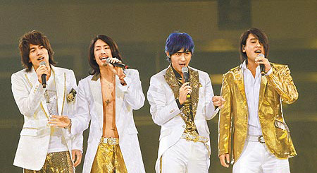 整場演出4人各出奇招,吳建豪大露胸腹肌,仔仔吊鋼絲、跳舞時(shí)不斷自摸下,言承旭改走可愛路線,被小丑背著演唱,帥臉贏得日本師奶滿堂彩。
