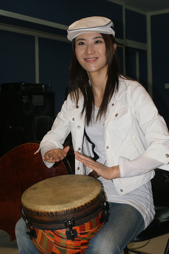 為了讓記者一飽耳福,尚雯婕還特別拿出了一只原木色花紋的非洲手鼓,牛皮鼓面用鐵圈緊緊箍著。緊接著,尚雯婕意想不到的將雙手輕松隨意地落在鼓面上,奏出了一段讓人不禁跟著搖擺身體的節(jié)奏,頓時一股原始自然風(fēng)在耳畔開始回旋。尚雯婕表示,為了完美的將演唱會呈現(xiàn),自己除了白天與樂隊磨合,晚上對歌曲重新編曲,每天還要練舞長達(dá)4小時之外,從舞臺設(shè)計到演出的概念尚雯婕都有親力親為參與到其中。這段非洲鼓就是她和導(dǎo)演經(jīng)過商榷切磋出來的“重磅炸彈”。除了一系列的緊張排練,她還要忙里偷閑來學(xué)習(xí)這段非洲手鼓。剛開始的時候完全摸不著頭腦,現(xiàn)在的她已經(jīng)可以用很多種手法的組合打出一些復(fù)雜的旋律來。學(xué)習(xí)非洲鼓最重要的是必須要將節(jié)奏韻律很好的掌握還有反復(fù)用心的練習(xí)。手鼓的演奏在于接觸鼓面的指法而不是用多大的力氣敲擊鼓面,所以完全不用擔(dān)心太認(rèn)真的練習(xí)會把自己的雙手敲腫。當(dāng)記者問到老師是誰的時候,尚雯婕賣了一個小關(guān)子。她說:“是行家!絕對的行家!演唱會上我們就一見分曉吧!”