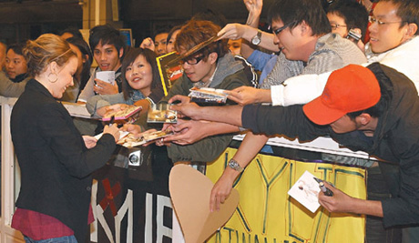 凱莉·米洛在機場為歌迷簽名。