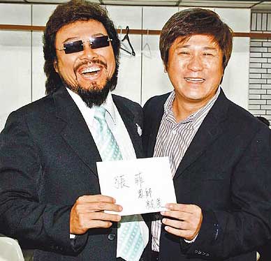 中新網11月7日電 臺灣媒體報道,胡瓜女兒小禎18日將在臺灣喜來登飯店為女兒舉行雙滿月酒,昨胡瓜親自到中視《綜藝大哥大》送請?zhí)垘煾笍埛疲瑤熗絺z臺上因節(jié)目對打競爭,睽違近2年首度同臺,胡瓜說:“10年前父親過世后,一直把菲哥當父親看,他也一路看小禎長大。”