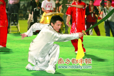 組圖:謝霆鋒迎奧運(yùn)舞刀弄槍 張柏芝編口訣助夫