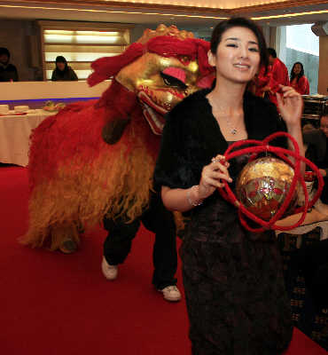 “2008新娛樂慈善群星會”將于3月1日在上海東方藝術(shù)中心舉行。昨天下午,主辦方SMG新娛樂在浦江游輪“君子蘭”號上舉行了隆重的“2008新娛樂慈善群星會”啟動發(fā)布會,為即將舉行的盛大頒獎活動拉開了序幕,F(xiàn)場,歌手何潤東和“小燕子”黃奕以一段熱鬧的舞獅出場,為活動預(yù)熱。