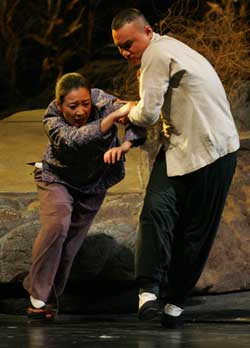 資料圖:著名演員梁冠華以一位外號“狗兒爺”的形象演出話劇《狗兒爺涅槃》。 中新社發(fā) 滿會喬# 攝