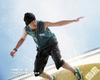 最近,周杰倫為拍攝新廣告,牽手3位跳水新星吳敏霞、王峰、陳若琳,上演了一幕“另類”跳水秀。這次周杰倫也有份參與廣告創(chuàng)意,例如片中一個池壁沖浪的鏡頭,完全沒有滑板經(jīng)驗的他,在拍攝過程中居然可以擺出滑板碰鼻的專業(yè)動作。不過說到跳水美態(tài),周杰倫自然比不上吳敏霞,她一出手便震撼全場:干凈利落的轉(zhuǎn)身,如海豚般輕盈地一躍就完成整個拍攝。