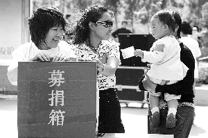 5月18日下午,國美第一城的部分居民在社區(qū)廣場上表演唱歌、朗讀等節(jié)目,以吸引眾人前來捐款,當(dāng)天獲捐數(shù)額達(dá)到了1萬多元。本報(bào)記者 王嘉寧 攝