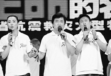 張國立、陳道明、蔣雯麗、宋祖英、葛優(yōu)等從北京趕來,成龍、譚詠麟、劉德華、張學(xué)友、黎明等從香港趕來,吳宗憲、陶喆、王力宏、蘇有朋、孫燕姿等從海峽彼岸趕來……如此強(qiáng)大的明星陣容,成了可歌可泣的災(zāi)區(qū)英雄和群眾的配角,晚會上最打動人心的是發(fā)生在災(zāi)區(qū)的真實故事,而明星們則集體變成了故事員。這些故事讓人在精神上經(jīng)受洗禮,讓心靈受到了震撼。而明星們的動情歌聲和朗誦,則烘托和渲染了這些感人的故事。