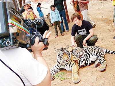 方力申日前到泰國老虎寺拍攝《向世界出發(fā)》第三輯,與張牙舞爪的大老虎并肩而行,他給老虎洗澡、喂奶。為安全起見,事前他已買高額保險并打破傷風針,以防萬一。