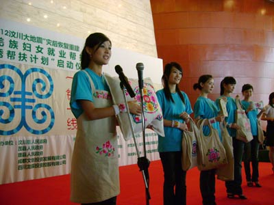 在稍后的一周時間內(nèi),5位中華小姐將前往羌民族世代聚居、同時也是受地震破壞嚴(yán)重的汶川、理縣、茂縣等地,與羌族婦女一起住帳篷、做刺繡,了解羌繡手工技藝、感受和記錄災(zāi)區(qū)同胞在災(zāi)后重建階段的生活狀況。5位華姐義工將在“壹基金”位于四川當(dāng)?shù)氐那祭C幫扶中心的培訓(xùn)指導(dǎo)下,了解羌繡的生產(chǎn)流程、參與產(chǎn)品的設(shè)計包裝,在進(jìn)行全面深入調(diào)研的基礎(chǔ)上集體完成羌繡幫扶報告并制定羌秀推廣計劃。5名華姐義工,有學(xué)習(xí)傳媒專業(yè)的,也有學(xué)習(xí)服裝設(shè)計專業(yè)的,我們會設(shè)計出有針對性和可行性的羌繡推廣方案,通過報紙、電視、網(wǎng)絡(luò)讓更多的人了解羌繡,同時也給羌繡手工藝品開拓一片市場,幫助受災(zāi)群眾盡快實現(xiàn)生產(chǎn)自救。”