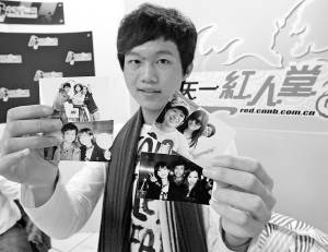 陳琪在紅人堂展示他與金莎等明星的合影。見習(xí)記者 王鵬 攝