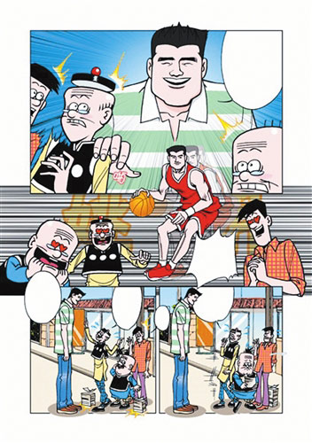 籃球巨星姚明第一次授權開發(fā)的長篇漫畫作品《姚明與老夫子》,即將于12月15日在動漫雜志上連載。昨日,本報獨家拿到了這部漫畫的最終成品稿,姚明與老夫子搭檔的漫畫形象格外幽默,而姚明憨態(tài)可掬的樣子與《功夫熊貓》中的熊貓阿寶頗為神似。這部漫畫的創(chuàng)作者更向記者透露,因為很喜歡老夫子的形象,姚明此次欽點老夫子與自己在漫畫中搭檔。
