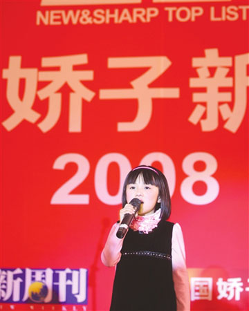 昨晚的頒獎(jiǎng)典禮一開始,一陣天籟般的童聲就從會(huì)場(chǎng)傳來(lái),一個(gè)留著娃娃頭的可愛(ài)小姑娘唱著《歌唱祖國(guó)》登上了舞臺(tái)。她就是奧運(yùn)會(huì)開幕式那首《歌唱祖國(guó)》的演唱者楊沛宜。楊沛宜在這次中國(guó)嬌子新銳榜中獲得了“2008年最美的聲音”,巴蜀鬼才魏明倫成為了她的頒獎(jiǎng)嘉賓。