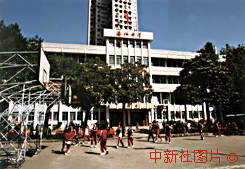 圖片說明: 濠江中學(xué)是當(dāng)年澳門升起第一面五星紅旗的地方。