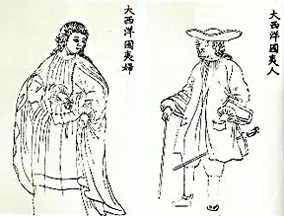 1751年,乾隆皇帝下令編撰《皇清職貢圖》一書時(shí),由中國宮廷畫師描繪的葡萄牙男人、婦女的形象。