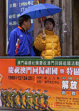 澳門民間的慶回歸活動陸續(xù)展開,預(yù)告解放軍歌舞團演出的海報出現(xiàn)在大街小巷。中新社傳真 宗金柱 攝