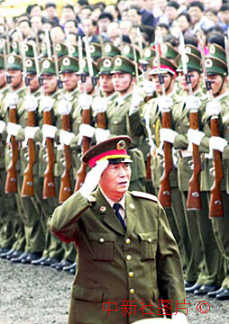 中國人民解放軍軍委副主席張萬年19日在珠海檢閱駐澳部隊。中新社數(shù)碼傳真 王瑤 攝
