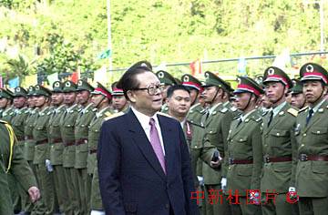 國(guó)家主席江澤民在澳門回歸之日親臨解放軍駐澳部隊(duì)營(yíng)地,檢閱剛剛進(jìn)駐的將士們。 中新社數(shù)碼傳真 王瑤攝