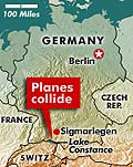 德國(guó)柏林當(dāng)?shù)貢r(shí)間7月2日凌晨(北京時(shí)間7月2日晨7時(shí)),巴登-符騰堡州地方政府的發(fā)言人稱,兩架大型飛機(jī)于7月1日夜23時(shí)(北京時(shí)間7月2日晨6時(shí))左右在德國(guó)與瑞士交界的博登湖(又譯康斯坦茨湖)上空相撞,兩架飛機(jī)隨后墜落在湖邊的公路上。當(dāng)?shù)鼐椒Q,墜毀的波音飛機(jī)是波音-757貨機(jī),另一架是來自白俄羅斯的圖-154,估計(jì)可能有150人死亡。