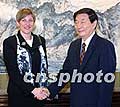 圖:吳儀迎接世博會考察團團長卡門·塞文