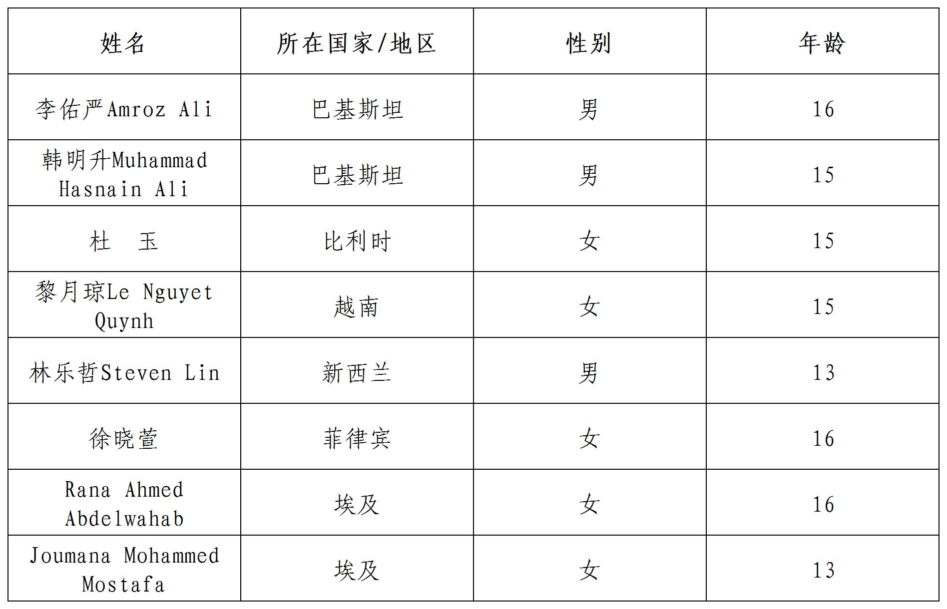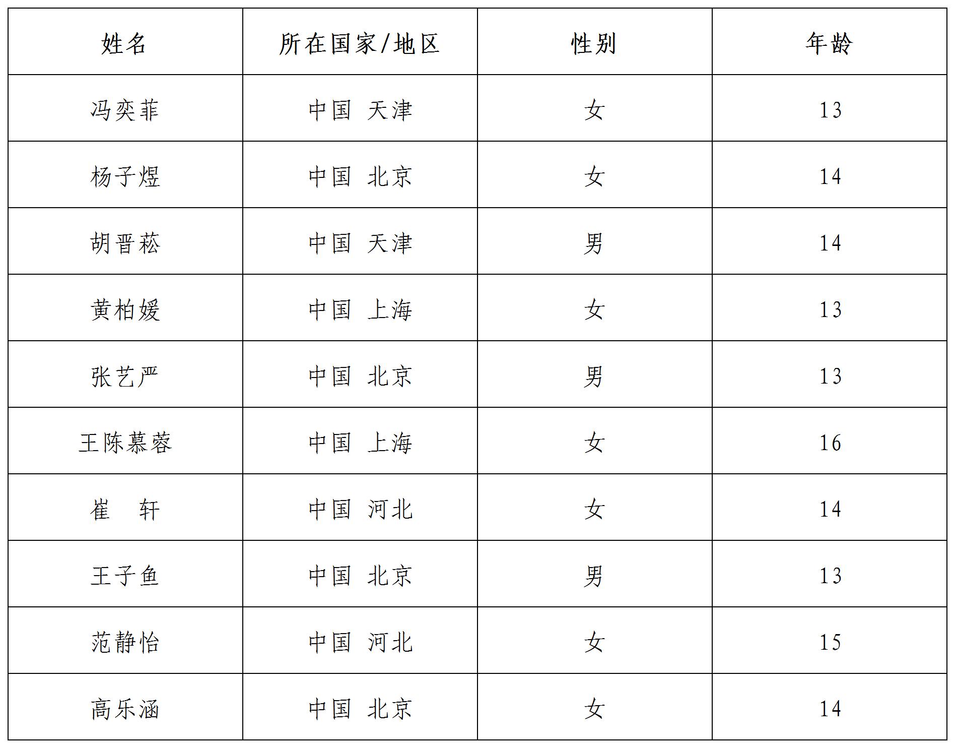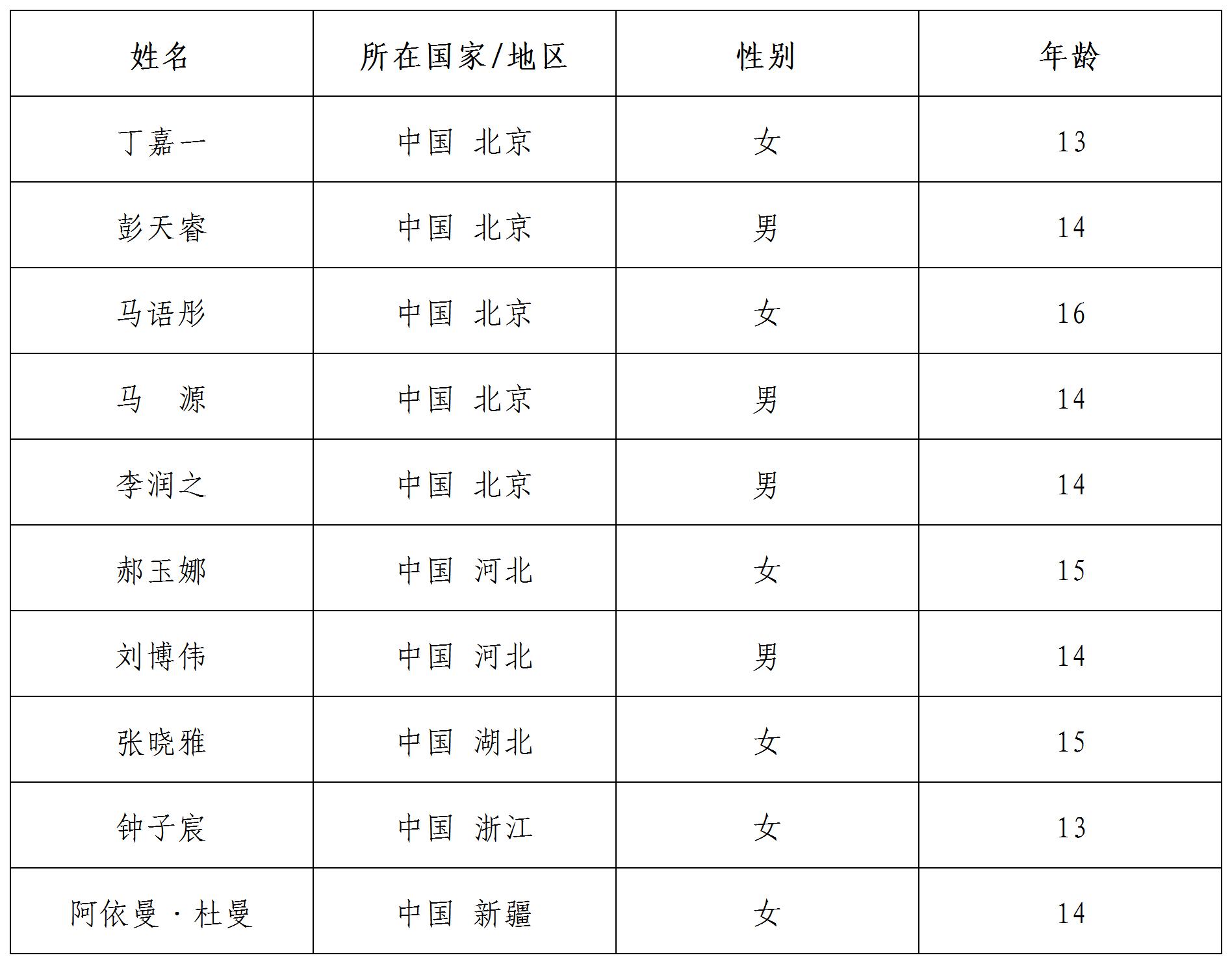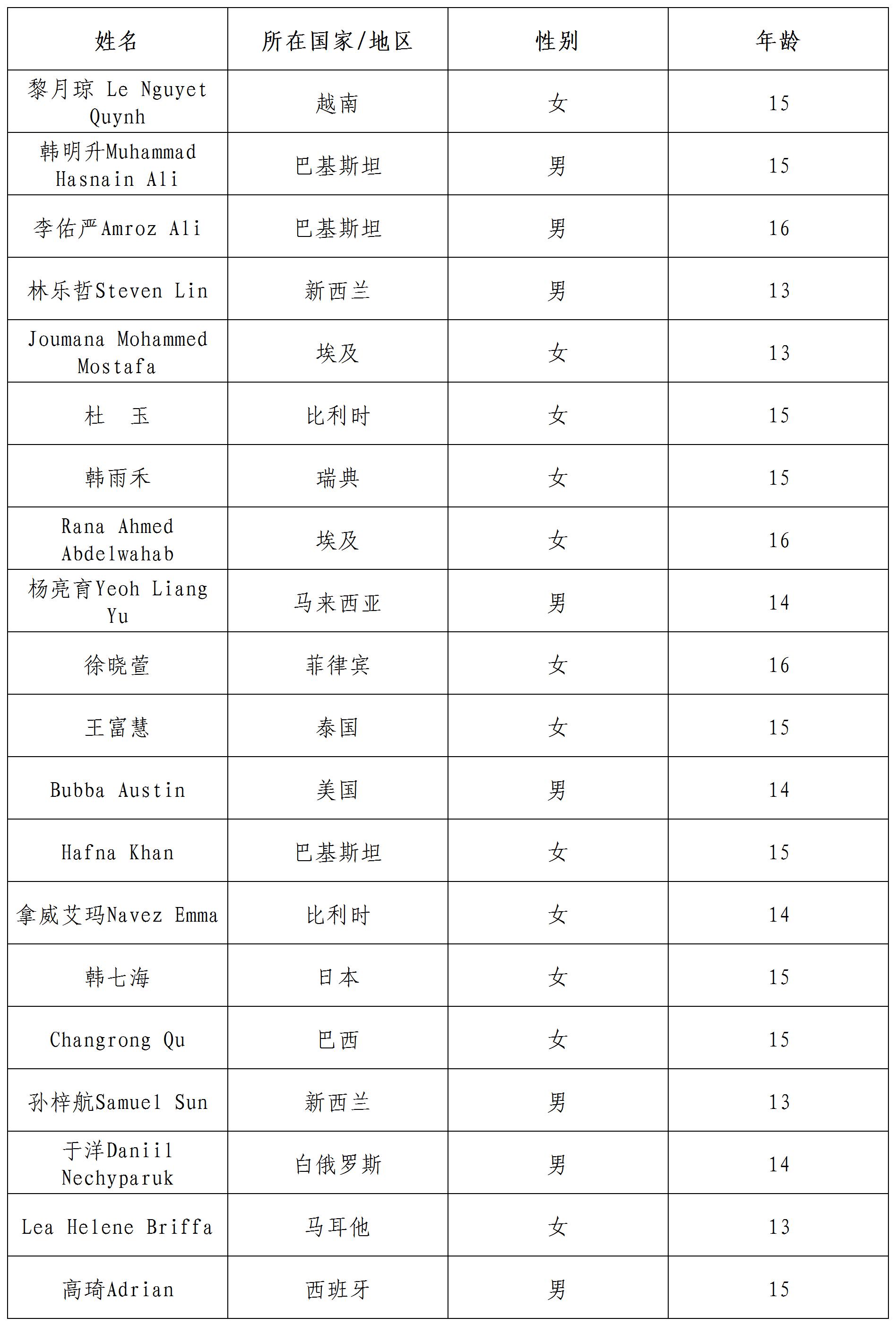 公示時間:即日起至2022年2月1日北京時間24:00 咨詢方式: 郵箱:yszxhd@sclc2017.org 聯(lián)系電話:15810563423 如有異議,請于公示期間致電或郵件咨詢。本活動最終解釋權(quán)歸中國宋慶齡青少年科技文化交流中心所有。 備注:標(biāo)注國家以參與者報名時駐在國為準(zhǔn)。